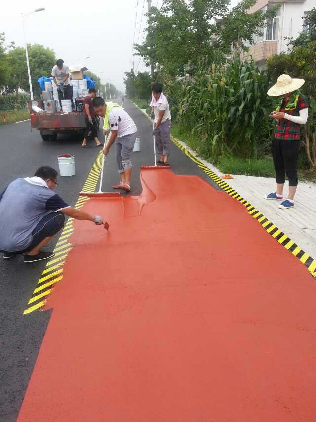 彩色路面防滑材料是一種可廣泛應(yīng)用在室內(nèi)外的高分子聚合地坪材料,包含底涂、粘合劑、陶瓷顆粒、改性罩面漆,具用較好的耐候性防滑及附著力,是城市綠道的較好材料